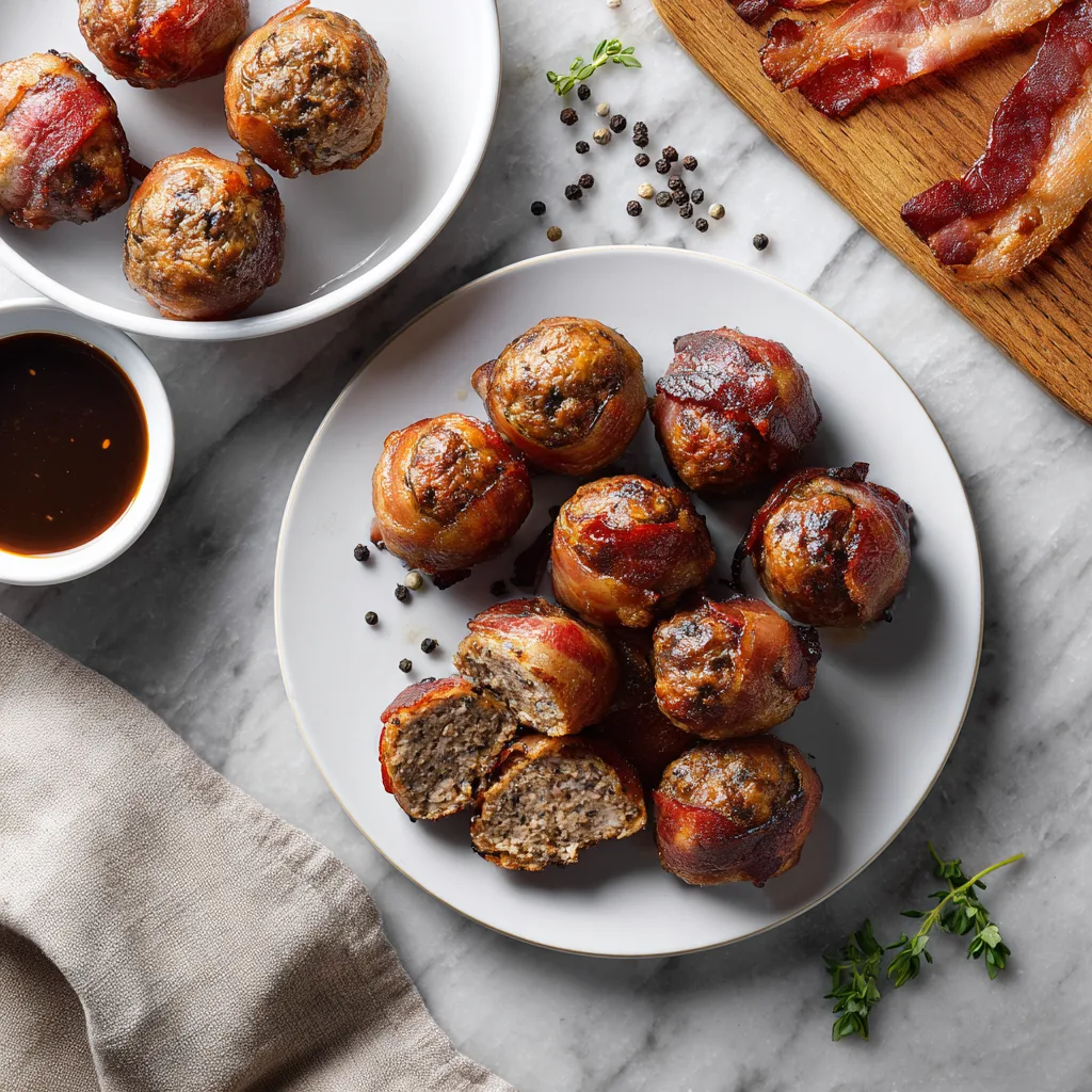 Juicy meatballs wrapped in crispy bacon and baked to perfection for the ultimate crowd-pleasing bite.