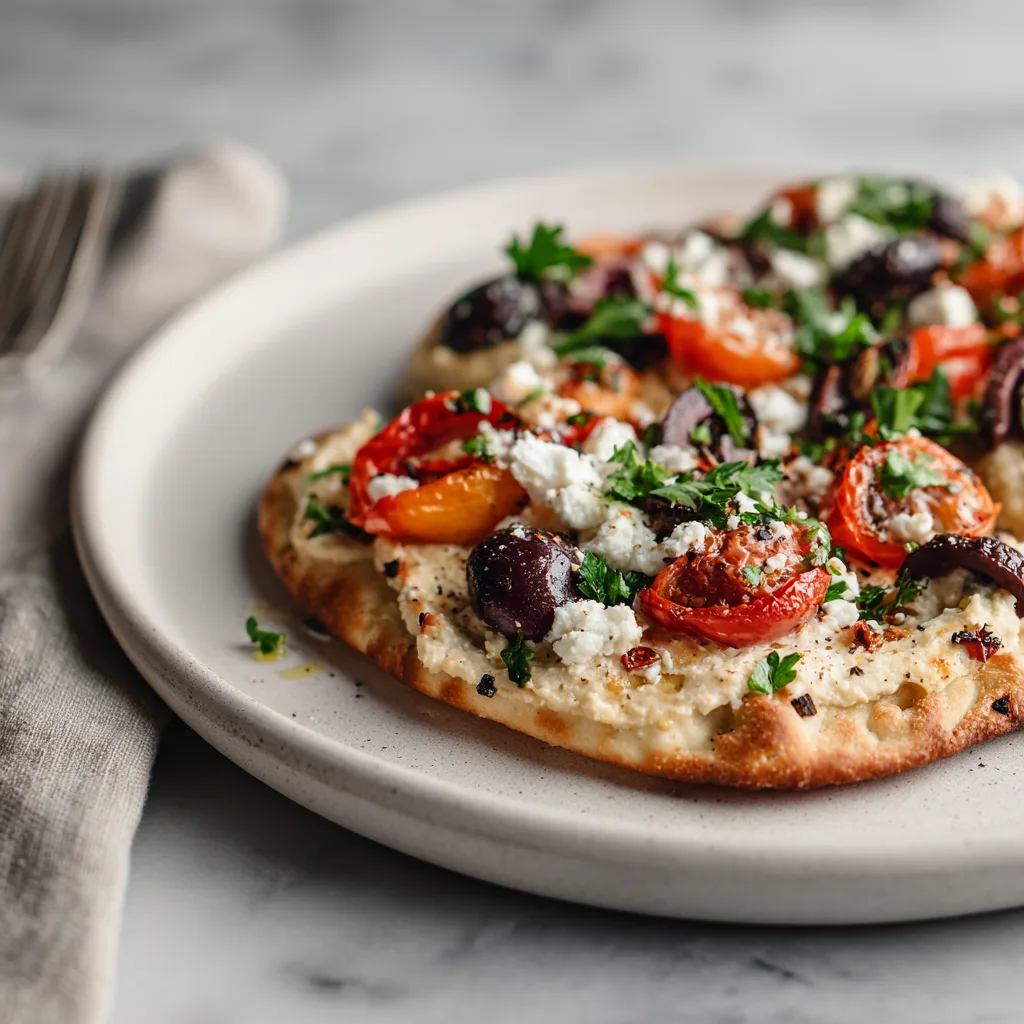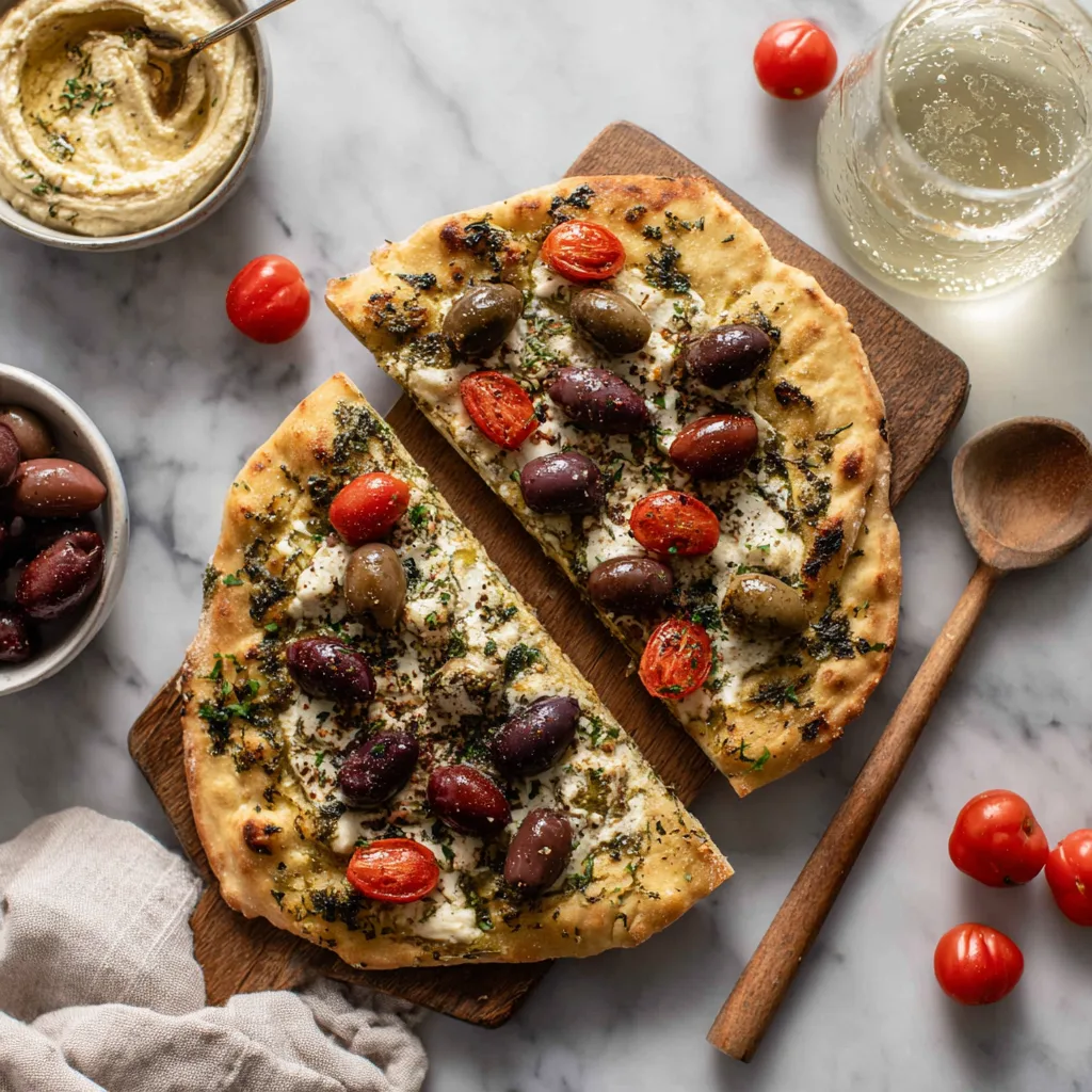 Whether you serve it as a vegetarian flatbread dinner, a light lunch, or a homemade Mediterranean appetizer, this recipe is quick to prepare and absolutely bursting with flavor.