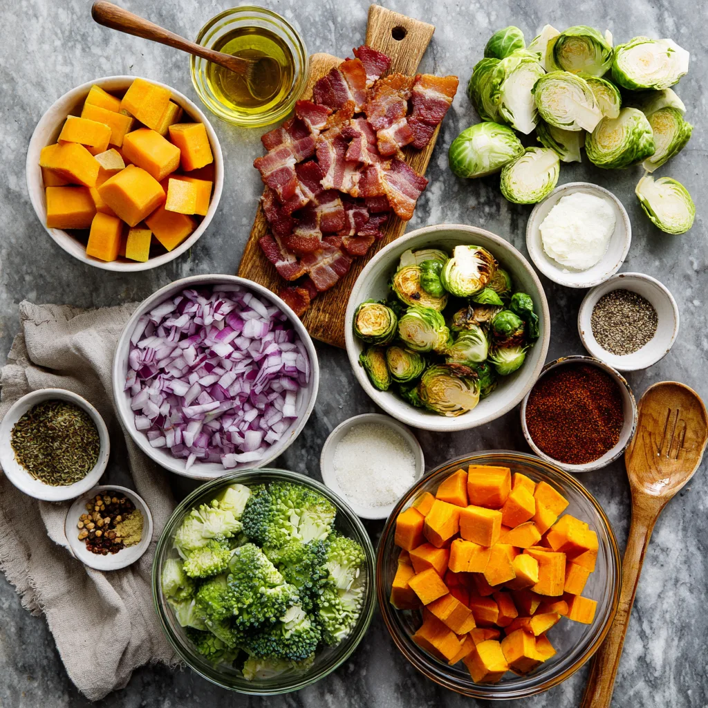 Roasting is the secret weapon here. High heat transforms humble vegetables into golden, flavor-packed bites with crisp edges and tender centers. Add bacon to the mix, and suddenly every piece is coated in savory richness, making this dish nearly impossible to resist.