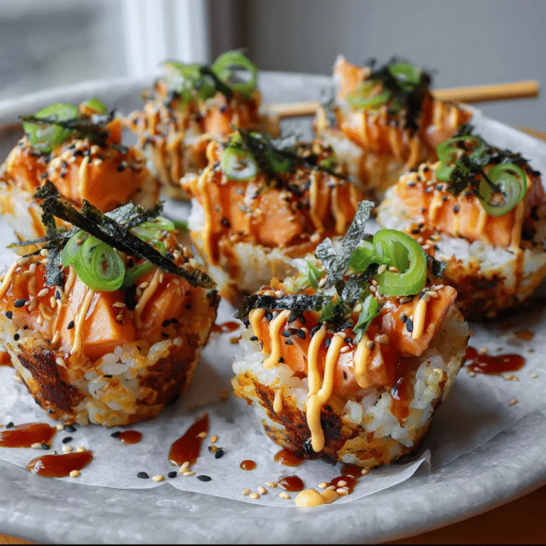 If you’ve spent any time scrolling food videos lately, chances are you’ve seen Viral Baked Salmon Sushi Cups popping up everywhere. Crispy-edged rice, tender baked salmon, creamy spicy mayo, and that irresistible drizzle of sauce — all baked into handheld…