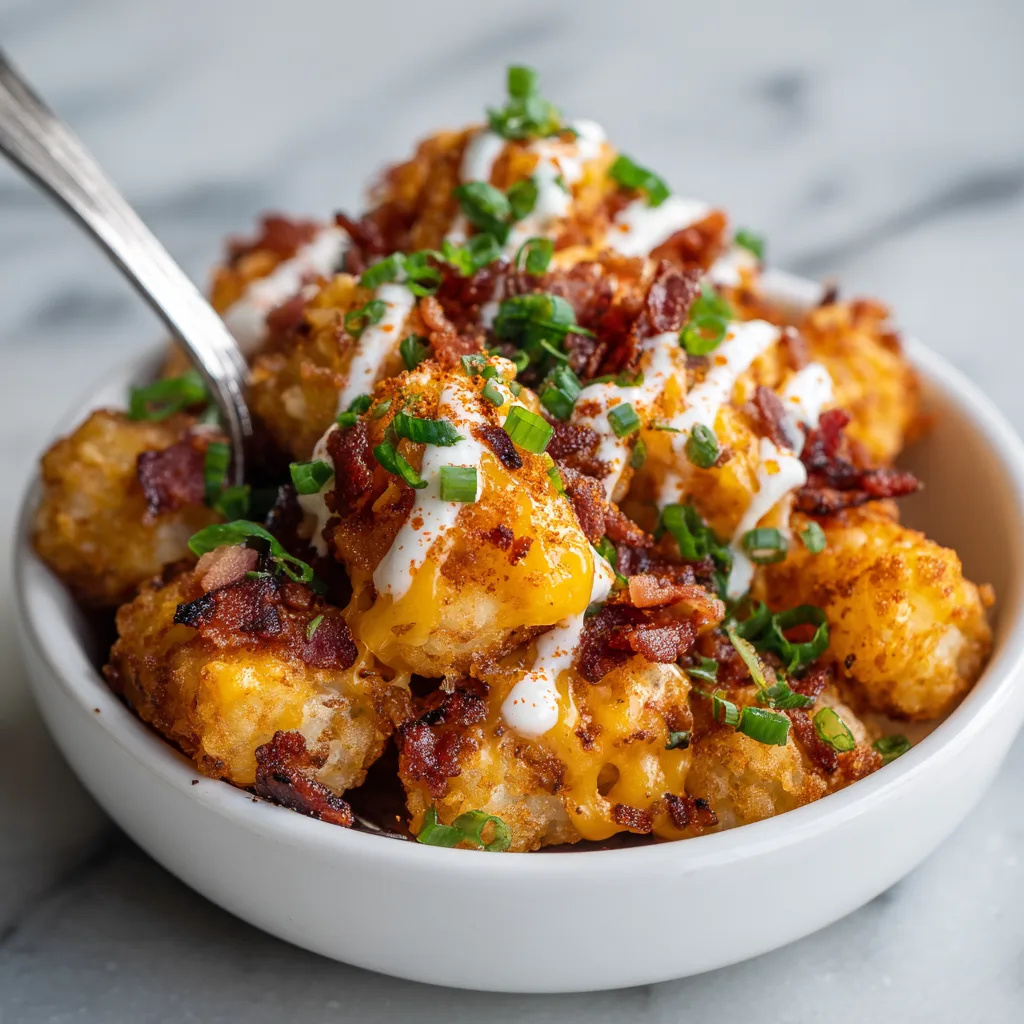 This loaded tater tots recipe transforms a simple frozen potato into a show-stopping dish perfect for game day, parties, family movie nights, or even indulgent weekend dinners. Whether you’re serving them as a snack, side dish, or centerpiece appetizer, these bacon cheese tots deliver big flavor with minimal effort.