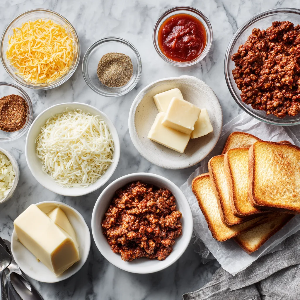 Ingredients for Cheesy Texas Toast Sloppy Joes