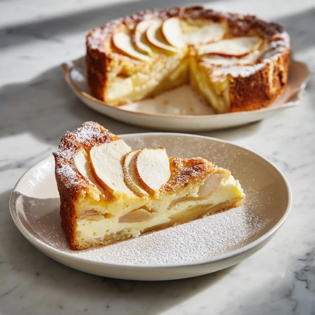 Often called a “magic pie” or “impossible pie,” this dessert forms its own layers while baking. A simple batter transforms into a soft custard center, a light cake-like layer, and a delicate crust-like base. Add sweet baked apples, warm cinnamon, and creamy custard, and you get a dessert that feels both rustic and elegant.