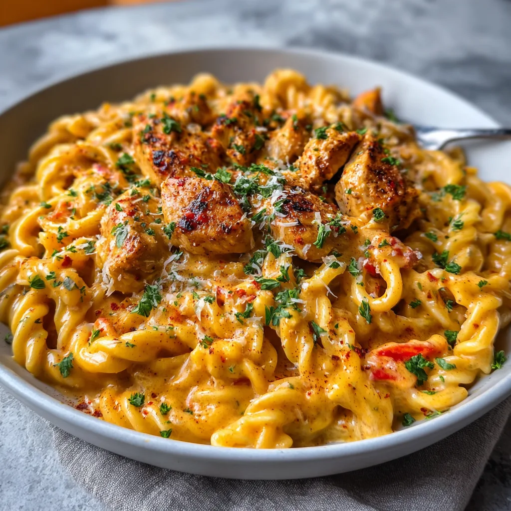 A rich and flavorful pasta dish made with tender chicken, Cajun spices, and a creamy parmesan sauce.