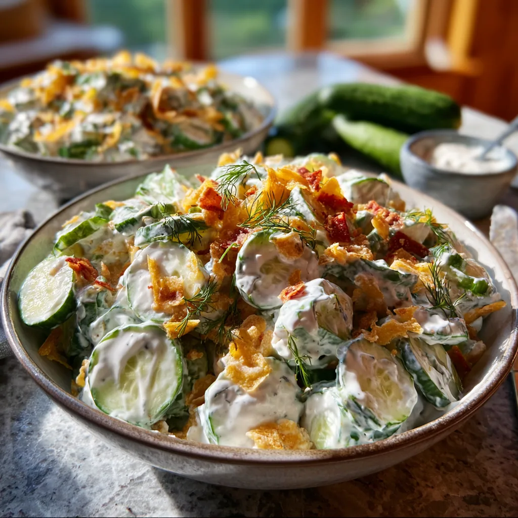 This salad is proof that you don’t need complicated ingredients or hours in the kitchen to create something crave-worthy. With fresh cucumbers, a creamy ranch-based dressing, and just the right blend of seasoning, it’s the kind of side dish that disappears fast at potlucks, barbecues, and family dinners.