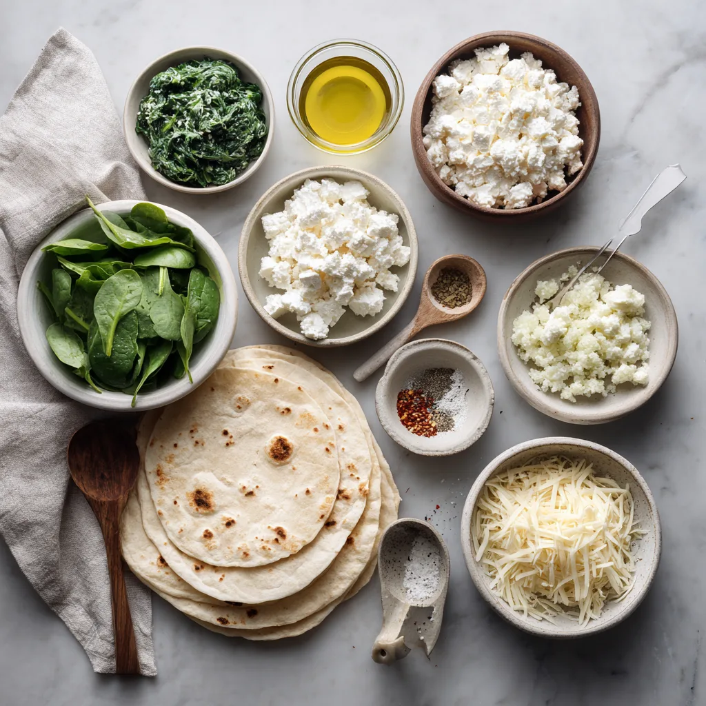 The secret is cooking the spinach first to remove moisture. Mixing cheeses while warm helps distribute flavor evenly. Cooking at moderate heat ensures crispy tortillas without burnt spots.