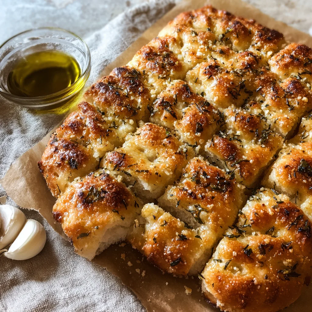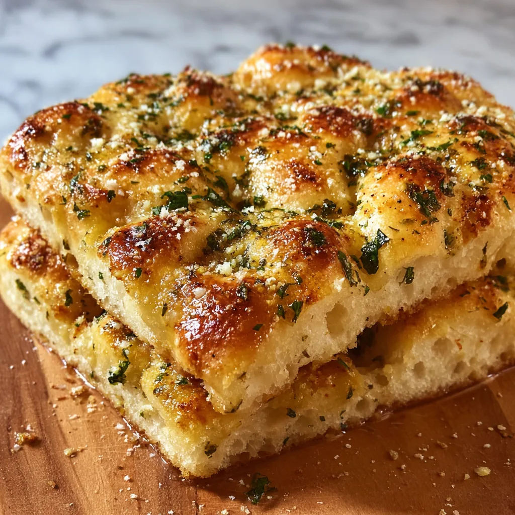 This version takes classic Italian focaccia and pushes it further by layering in garlic, butter, olive oil, and freshly grated Parmesan. The result is savory, aromatic, and irresistibly soft on the inside with crisp, cheesy edges.