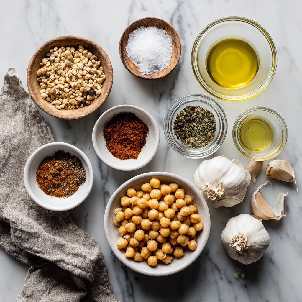 Toss dried chickpeas with garlic-infused oil, garlic powder, smoked paprika, cumin, salt, and pepper until evenly coated. - Roast Until Crispy