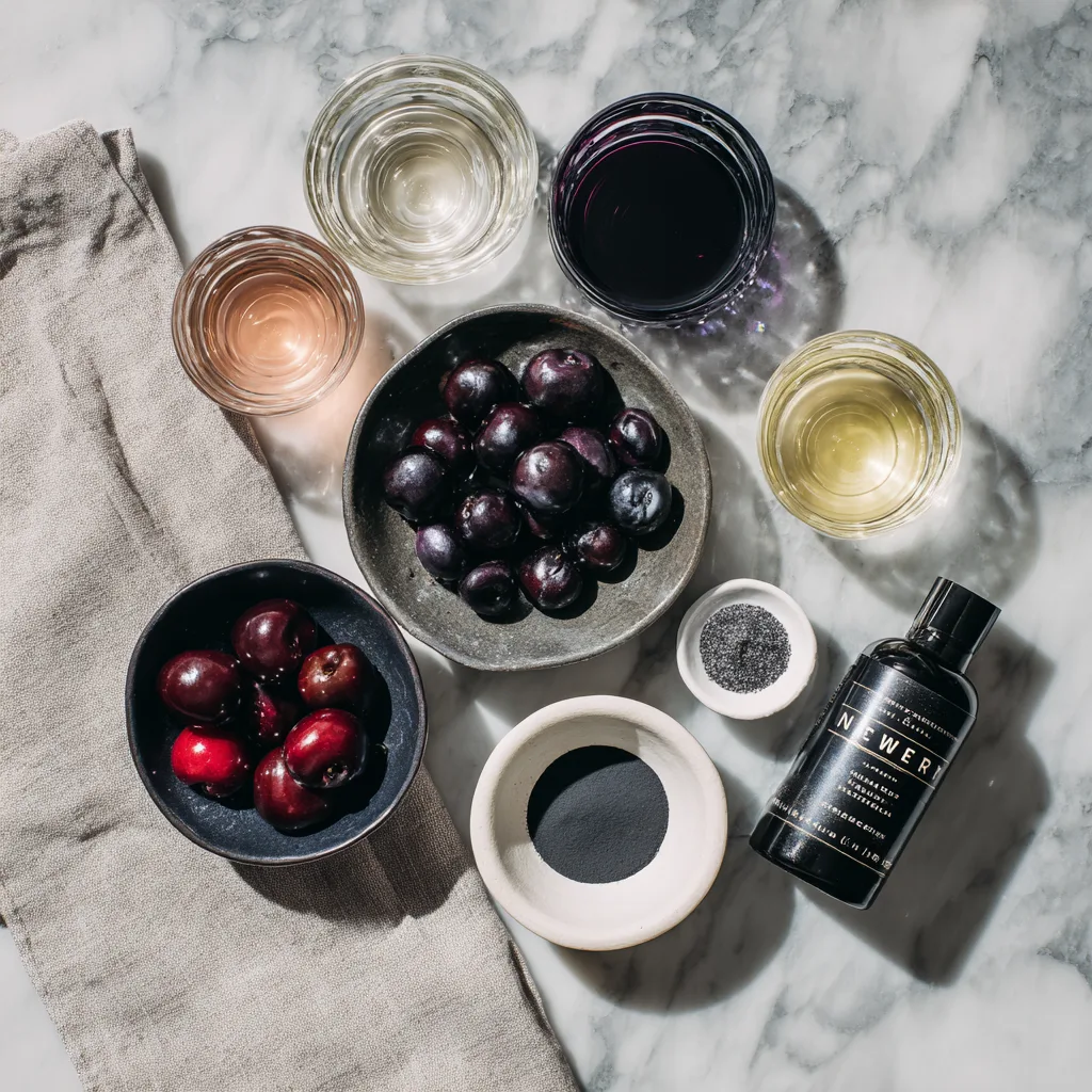 Each ingredient is carefully chosen to balance color, flavor, and texture. The black cherry element provides depth and richness, while lemon juice prevents the drink from becoming too heavy. The optional charcoal or shimmer adds visual drama without altering flavor when used sparingly.