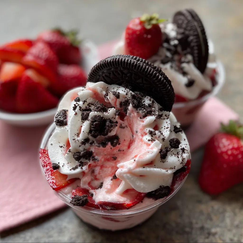 Before serving, garnish with fresh strawberry slices, Oreo crumbs, or whipped cream if desired.