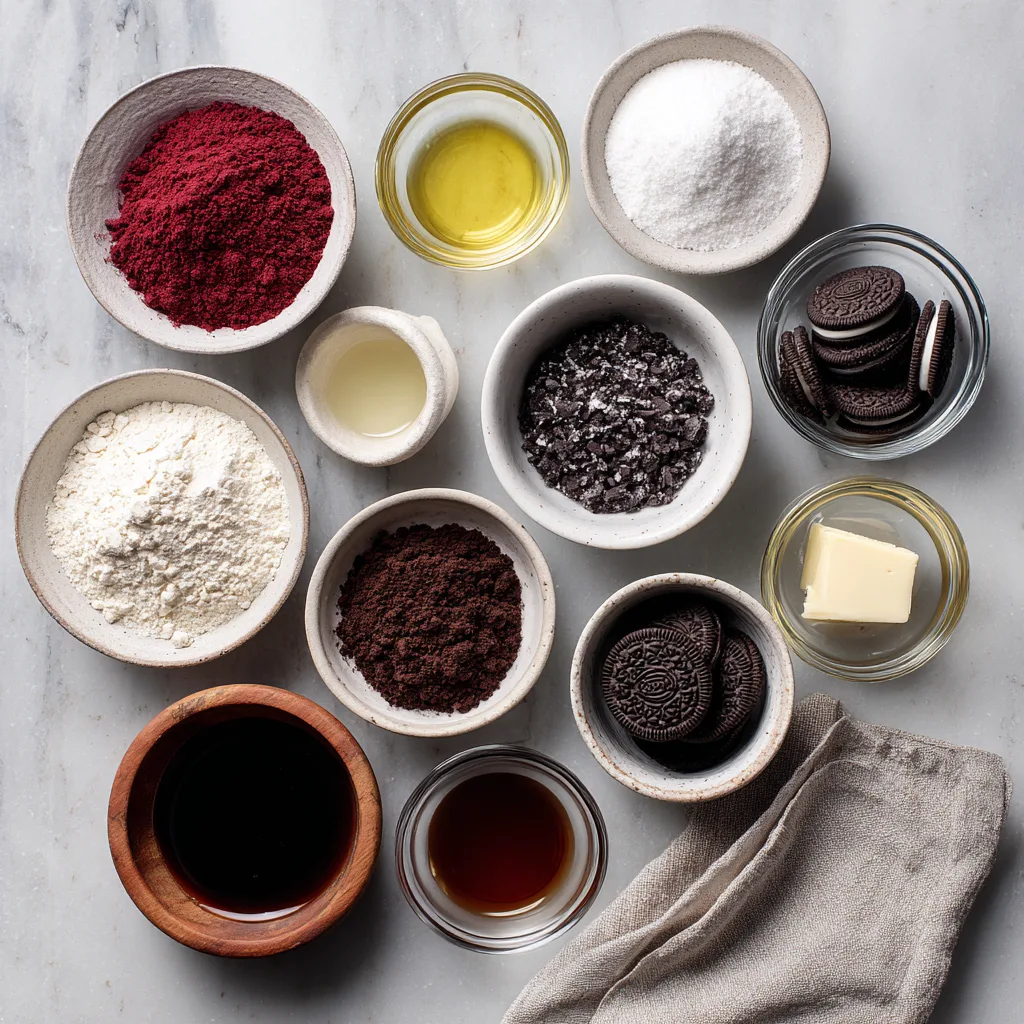 The contrast between the soft red velvet exterior and creamy Oreo filling creates a dessert that feels both luxurious and playful.