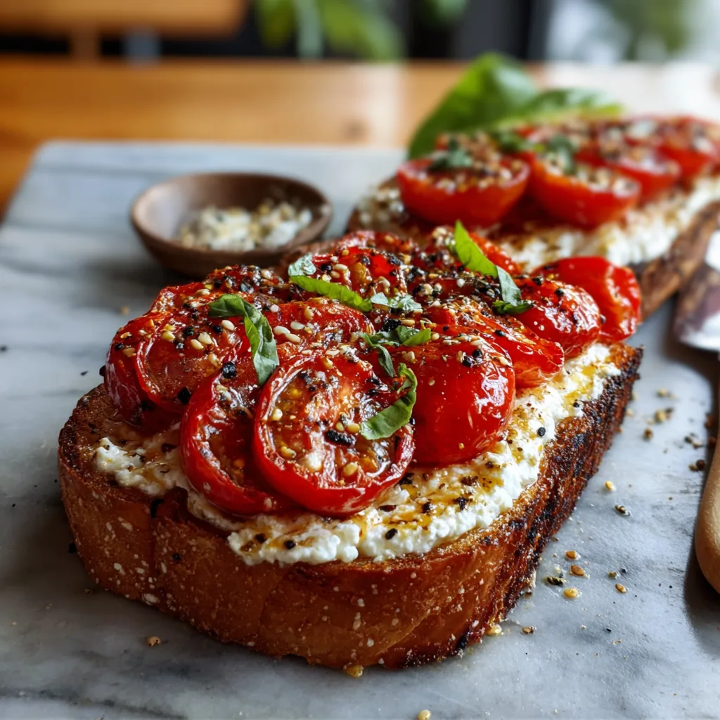 Tomatoes add brightness and acidity, cutting through the richness of the ricotta. When lightly roasted or seasoned, they become jammy, sweet, and intensely flavorful — the perfect contrast to crisp toast.