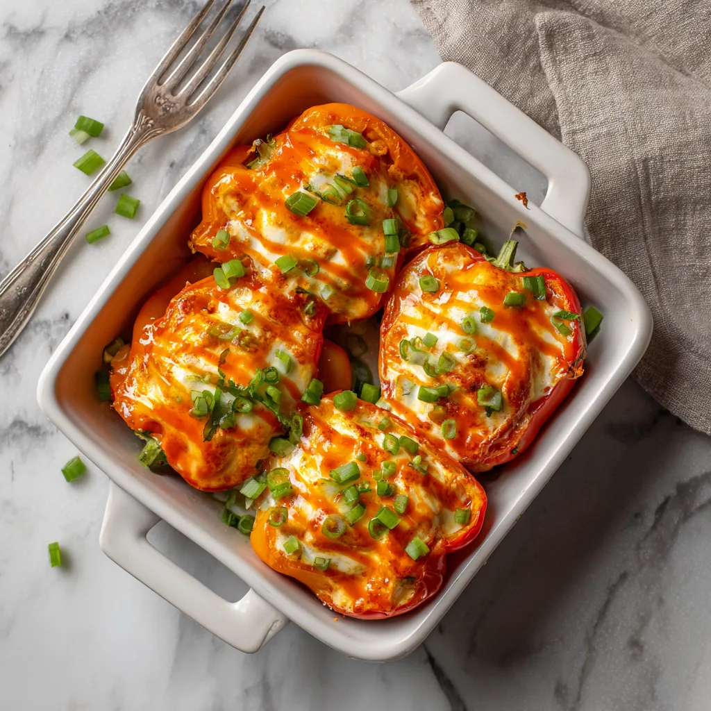 This recipe delivers bold, satisfying flavors while keeping things balanced and wholesome. The sweetness of roasted peppers perfectly complements the spicy buffalo filling, while creamy cheese smooths everything out into one irresistible bite.