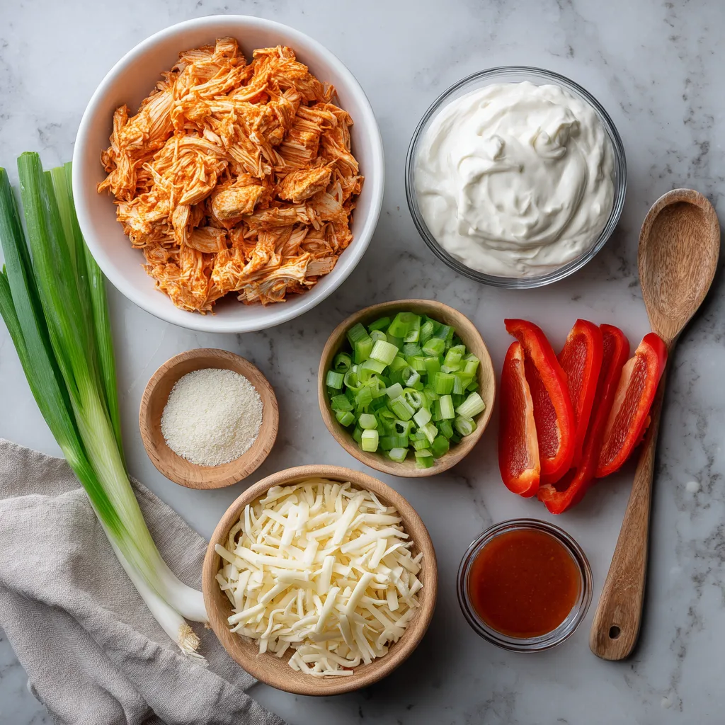 - Garnish with extra buffalo sauce and green onions before serving.