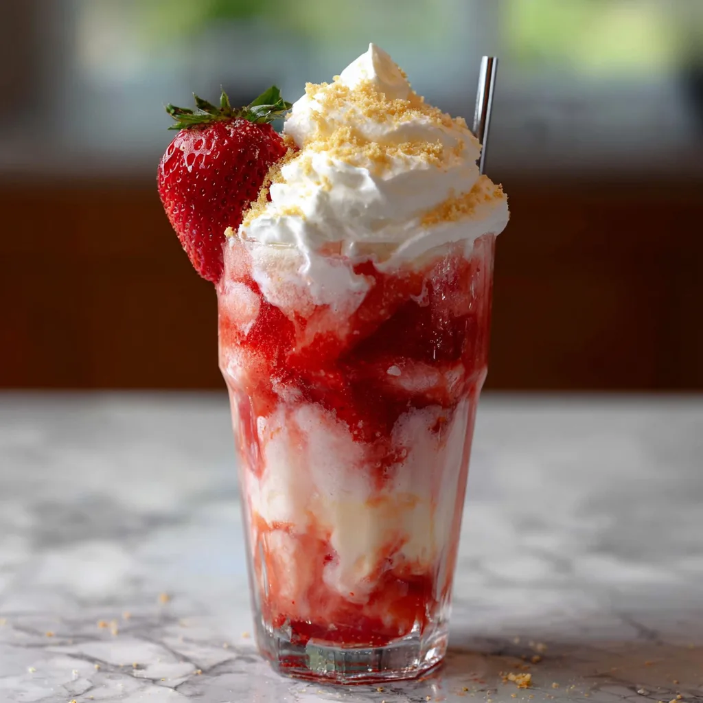 Strawberry shortcake is built on contrast: juicy fruit, fluffy cake, and rich cream. Those same elements translate beautifully into a drink.