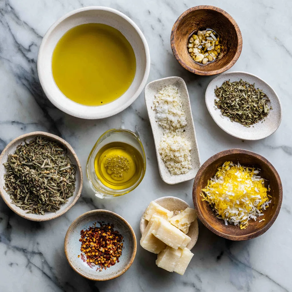 Each ingredient brings something important: olive oil for richness, garlic for savory punch, herbs for freshness, and lemon zest for lift.