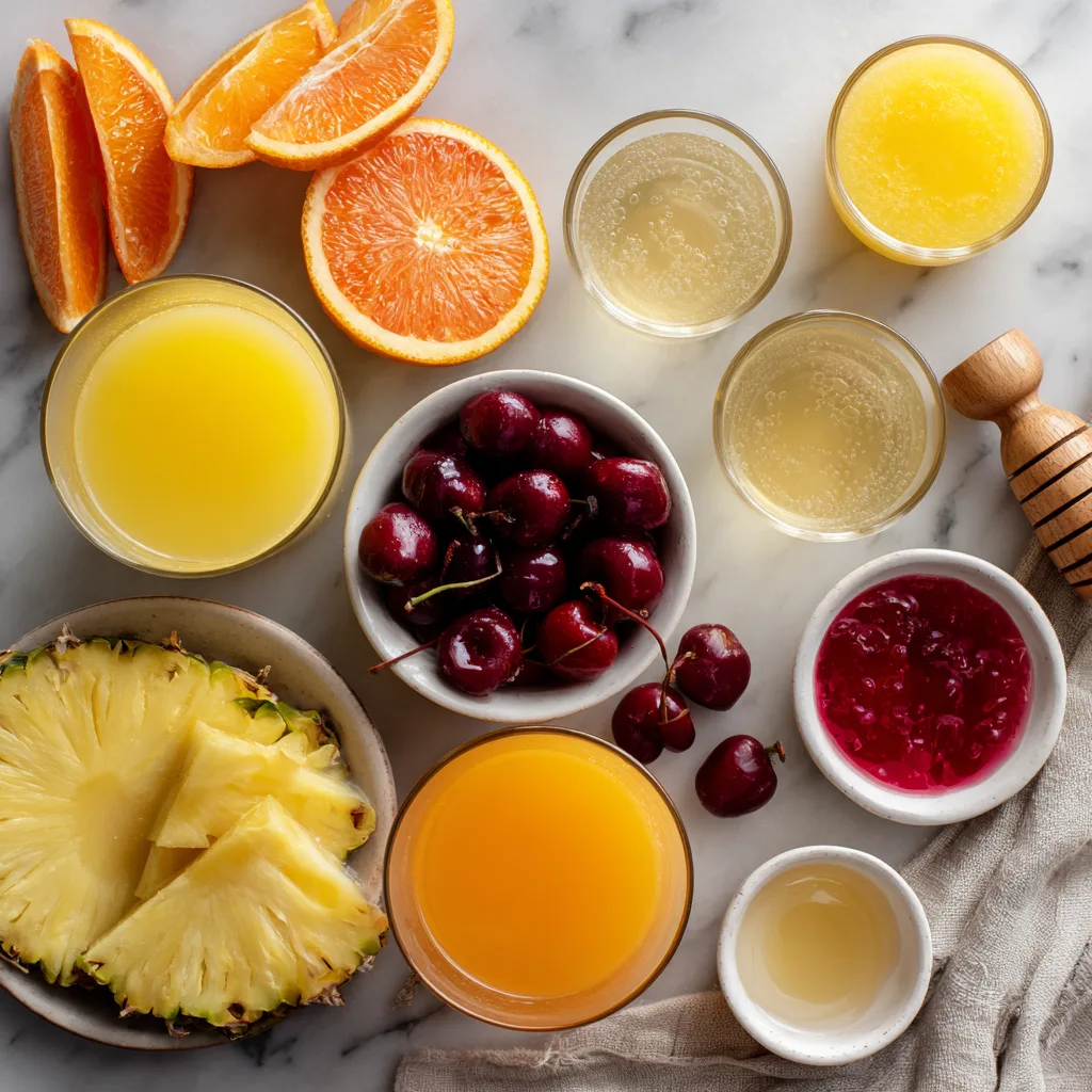 - Bright and fruity from pineapple and orange juice
